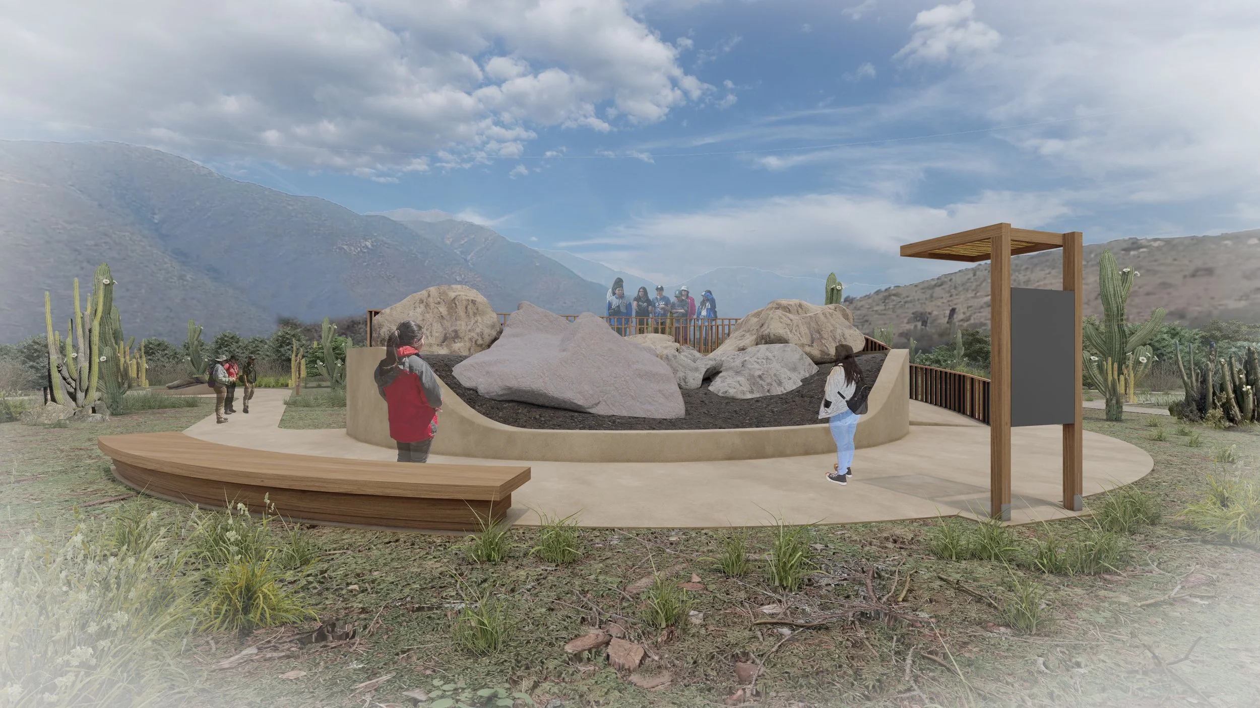 Considera el diseño, trazado e implementación de senderos, mobiliario y equipamiento interpretativo, señalética interpretativa y de orientación. Proyecto en etapa de evaluación CMN.